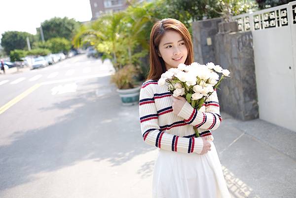 簡白的里昂,搭配柔軟的淡藍,主紅色碎花讓人燃起少女心